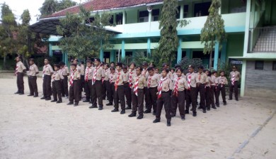 Kegiatan upacara pembukaan Latihan penggalang gudep Blora 01.07/ 01.08 SMPN6 BLORA pada program ekskul pramuka bela negara. -